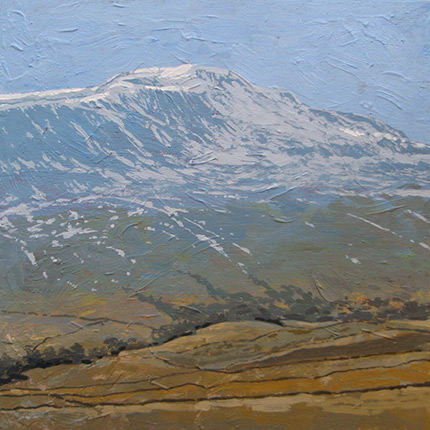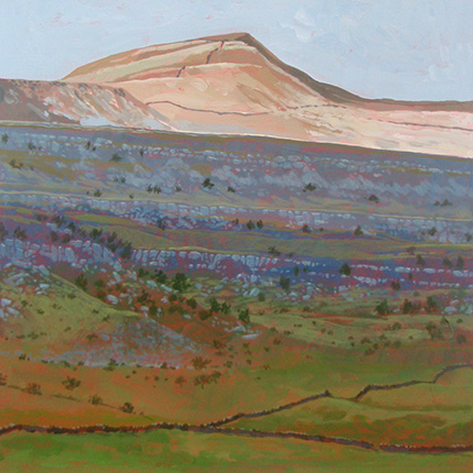 The peaks of Ingleborough, Whernside and Penyghent are in my backyard – so no surprise that they are all subjects for my attention as a painter. Since moving to this area forty years ago my eagerness to visit the summits has never diminished and I regularly pay homage to each. However, I have drawn the line under four round trips of all three in one day (24 miles)!